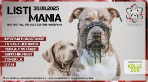 Termine Beitrags-Kategorie:Wissenswertes November 2025 Tierischer Adventszauber Wann: 15.11.2025Wo: Mehrzweckhalle PrümWie: zwischen 11-17 Uhr könnt ihr zugunsten des Birkenhofs in weihnachtliche Stimmung kommen. Oktober 2025 Herbstfest und Hunderennen HSV Holzwickede Wann: 04.10.2025Wo: HSV HolzwickedeWie: ab 9 Uhr sind wir für dich da September 2025 Cita, Sommerfest mediterraner Hunde Wann: 21.09.2025Wo: Wiedehopfstr. 197, 45892 GelsenkirchenWie: zwischen 10-17 Uhr sind wir für dich da Sommerfest Tierfreunde Lüdinghausen Wann: 07.09.2025Wo: Oberbauerschaft 32, 48308 SendenWie: Von 12-17 Uhr bin ich für dich vor Ort. Soka-Tag Bad Salzuflen Wann: 06.09.2025Wo: Trainingsgelände Partner Hund, Brüggenhaus 3, 32108 Bad SalzuflenWie: Von 12-17 Uhr geht das Fest. Der Erlös geht u.a. an Bullterrier in Not e.V. August 2025 Sommerfest Tierfreunde Münster Wann: 31.08.2025Wo: Tierfreunde Münster, Kötterstr. 198, 48157 MünsterWie: Einfach zwischen 11-18 Uhr mit guter Laune vorbeikommen Listimania Wann: 30.08.2025Wo: MV Oberhausen- Buschhausen e.V.,. Eichenstrasse 5, 46149 OberhausenWie: zwischen 11-18 Uhr sind wir für dich da Agilityturnier Senden Wann: 09.08.2025Wo: Agilityturnier SendenWie: weitere Infos folgen Mai 2025 Wann: 17.05.2025Wo: HuTa Amadeus, Alexianerweg 50, 48163 MünsterWie: Anmeldung bis zum 12.05.2025 per Mail an info@haustierbetreuung-ms.de Wann: 03.05.2025Wo: Pets Avenue von Blaulichtpfoten, Wirtschaftsförderung Hagen, ISG Mittelstraße, 58095 HagenWie: zwischen 10-18 Uhr sind wir für dich da Dezember 2024 Wann: 08.12.2024Wo: CreativQuartier Fürst Leopold, Halterner Str. 105, 46284 DorstenWie: Freu dich auf weihnachtliches Shoppen für Hunde zwischen 11-17 Uhr August 2024 Wann: 31.08.2024 Wo: MV Oberhausen- Buschhausen e.V.,. Eichenstrasse 5, 46149 OberhausenWie: zwischen 11-18 Uhr sind wir für dich da Wann: 25.08.2024Wo: Tierfreunde Münster, Kötterstr. 198, 48157 MünsterWie: Einfach zwischen 11-18 Uhr mit guter Laune vorbeikommen Juni 2024 Wann: 19.06.2024 zw. 19 UhrWo: Online, Einladung über Zoom-LinkWie: Einfach eine Mail mit Teilnahmewunsch an thea@dogbowlcheck.com schicken April 2024 Wann: 24.04.2024 um 19 UhrWo: Online, Einladung über Zoom-LinkWie: Einfach eine Mail mit dem Teilnahmewunsch an thea@dodbowlcheck.com schicken Januar 2024 Wann: 28.01.2024 zw. 11-16 UhrWo: Trabrennbahn GelsenkirchenWie: 5€ Eintritt, Hunde sind kostenlos (bitte Heimtierausweis mit Tollwutimpfung mitbringen) Dezember 2023 Wann: 10.12.2023 zw. 11-17 UhrWo: CreativQuartier Fürst Leopold, Halterner Str. 105, 46284 DorstenWie: Eintritt 7€, geöffnet zw 11-17 Uhr November 2023 Wann: 17.11.2023 um 19 UhrWo: Gemütlich vom Sofa aus (online)Wie: Melde dich per Mail bei thea@dogbowlcheck.com an und verbringe einen schönen Abend mit uns November 2023 Wann: 11.11.2023 zw. 17-21 UhrWo: Lucka – Feines für den Hund, Kichhörder Str. 245, 44229 DortmundWie: Einfach vorbeikommen, an der Tombola teilnehmen und eine schöne Zeit haben August 2023 Wann? 27.08.2023Wo? Tierfreunde Münster, Kötterstr. 198, 48157 MünsterWie? Einfach zwischen 11-18 Uhr mit guter Laune vorbeikommen Juni 2023 Wann? 04.06.2023Wo? Tierfreunde Münster, Kötterstr. 198, 48157 MünsterWie? Einfach zwischen 12-17 Uhr vorbeikommen März 2023 Wann? 13.03.2023 Wo? Trainings- und Seminarraum Hund und Haas, Ernst-Gremler-Str. 17, 58239 SchwerteWie? Anmeldung unter info@hund-und-haas.de Das könnte dir auch gefallen Ein Welpe zieht ein! 21. Juli 2023 Darm Part I – Das Mikrobiom 1. Juli 2025 Unsere Senioren 6. November 2024